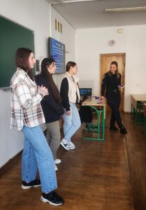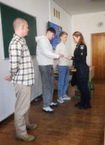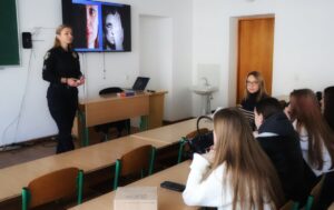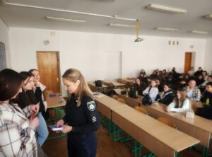 Своїм досвідом зі здобувачами поділилася керівниця відділу зв’язків з громадськістю управління патрульної поліції в Івано-Франківській області Олександра Бабецька.